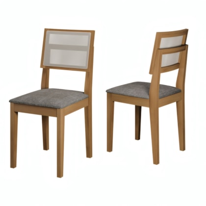 As 6 cadeiras possuem assento estofado em espuma D23 e revestimento em tecido linho, proporcionando conforto e um toque suave.