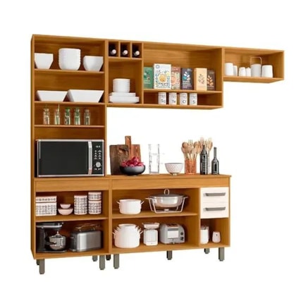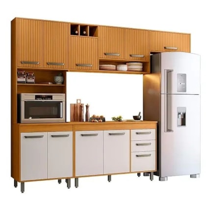Produzida em MDP de 15 mm e HDF de 3 mm, a Cozinha Malta garante resistência e durabilidade.