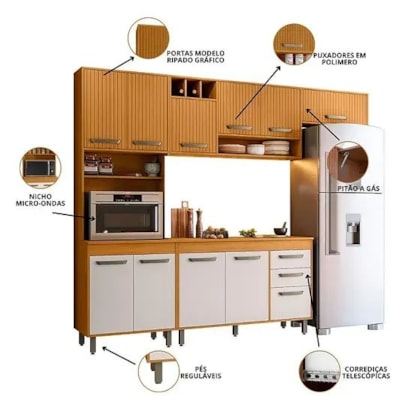 Transforme sua cozinha em um ambiente funcional, sofisticado e acolhedor com a Cozinha Compacta Malta 4 Peças.