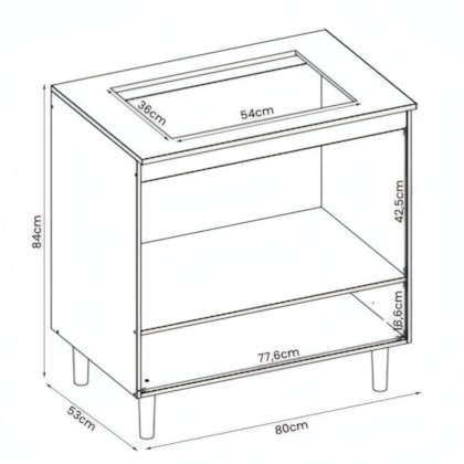 Medidas: Largura: 0,80m | Profundidade: 0,53m | Altura: 0,84m