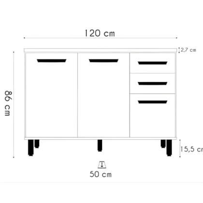 Medidas: Largura: 1,20m | Profundidade: 0,50m | Altura: 0,86m