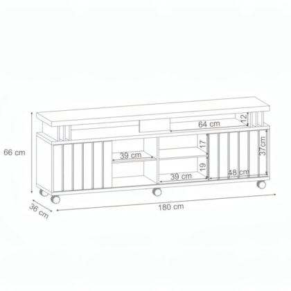 Medidas: Largura: 1,80m | Profundidade: 0,36m | Altura: 0,66m
