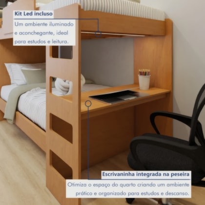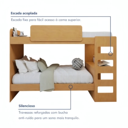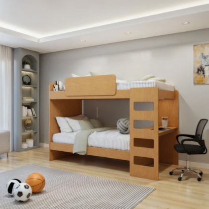 Revolucione quartos compactos com a Beliche Solteiro Olga da Lopas, uma solução completa que une segurança avançada, estilo moderno sofisticado e funcionalidade máxima em dimensões inteligentes. Fabricada em MDF/MDP de alta qualidade com acabamento em pintura UV fosca que garante durabilidade excepcional, oferece segurança superior com cantos arredondados protetores e estilo contemporâneo com LED integrado que valoriza o ambiente criando atmosfera aconchegante. Com duas camas de solteiro espaçosas que suportam até 240kg no total distribuídos, estrados fixos em MDF de alta resistência, escada integrada em MDP com degraus antiderrapantes e escrivaninha acoplada prática para otimizar ainda mais o espaço disponível. Inclui dispositivo antirruído avançado e trava de segurança inteligente para máximo conforto e praticidade no dia a dia.