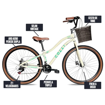 Gosta de praticar ciclismo ou quer uma bicicleta apenas para andar no dia a dia? A Bicicleta Colli Viena é a sua melhor escolha! Com uma alta qualidade! Com aro 29 aéreo com 36 furos, pedal Stone 9/16, pedivela triplo de aço, com tamanhos (24/34/42), e também contando com freios a disco e um câmbio dianteiro 31.8, a Bicicleta Colli Viena irá te proporcionar a maior qualidade e conforto nos seus passeios do dia a dia. O produto conta também com um selim Molise marrom Selle Royal e pneus 29x2.20 com faixa bege Chaoyang para você ter o melhor desempenho!