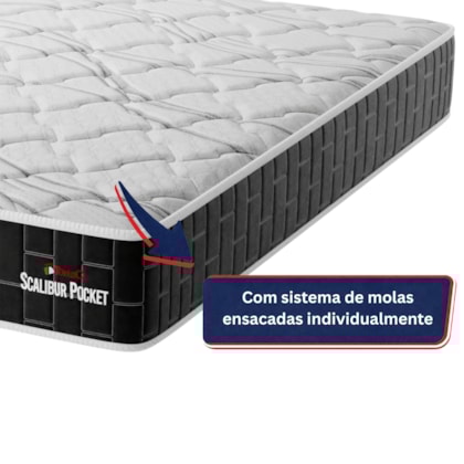 Descanse em grande estilo com o Conjunto Box Topázio Scalibur Preto. Suas molas ensacadas independentes proporcionam um suporte personalizado para cada curva do corpo, aliviando pontos de pressão e garantindo noites mais tranquilas. O revestimento bege confere um toque de elegância ao seu quarto.