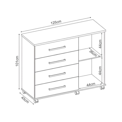 Medidas: Largura: 1,25m | Profundidade: 0,45m | Altura: 1,01m