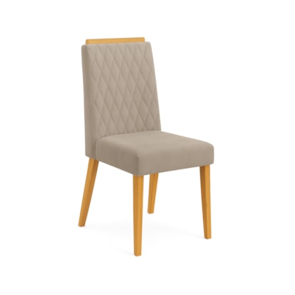 As cadeiras, com estrutura em MDF, espuma D23 selada e revestimento em veludo castor, proporcionam conforto e sofisticação ao ambiente.