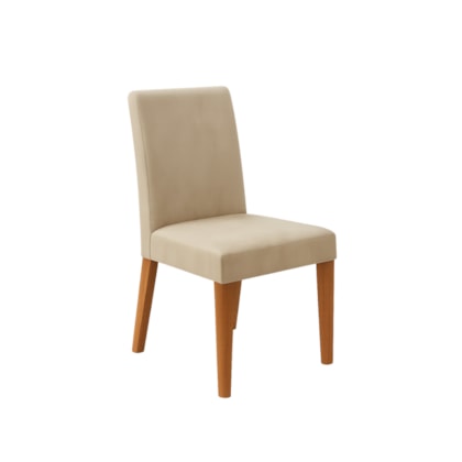 As cadeiras, também em MDF, contam com espuma D23 selada e revestimento em veludo, proporcionando conforto e um toque de sofisticação.