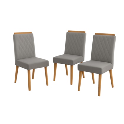 As cadeiras, com estrutura em MDF, espuma D23 selada e revestimento em veludo castor, proporcionam conforto e sofisticação ao ambiente.