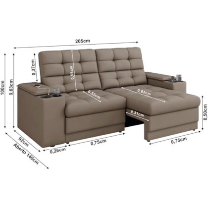 MODELO: Sofá Retrátil e Reclinável 2,05m 3 Lugares Com Porta Copos Entrada USB Kansas Veludo