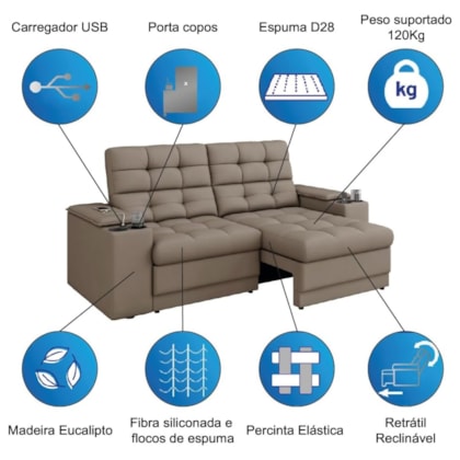 TIPO DE SOFÁ: Retrátil e Reclinável