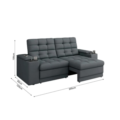 Sofá Retrátil Kansas 2,05m 2.05 Cinza