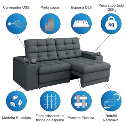 TIPO DE SOFÁ: Retrátil e Reclinável