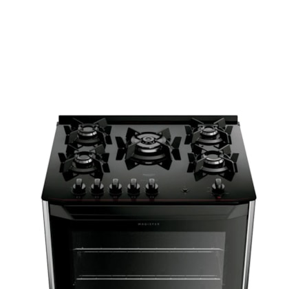 O fogão Magister 5 bocas com mesa de vidro é a escolha ideal para quem busca performance, design e segurança. A mesa de vidro temperado confere um visual moderno, que se integra perfeitamente às cantoneiras em inox. A estabilidade fica por conta das grades individuais de ferro fundido com 6 pontos de apoio, que oferecem segurança incomparável. A potência da Tripla Chama acelera o cozimento, enquanto o acendimento automático simplifica a rotina. O forno gigante de 100L é seu aliado nas receitas mais elaboradas, equipado com duas prateleiras – uma autodeslizante e outra deslizante com altura ajustável. O visor amplo e a luz interna permitem acompanhar o ponto perfeito, enquanto o isolamento térmico garante melhor performance do forno. O acabamento Limpa Fácil torna a limpeza descomplicada.