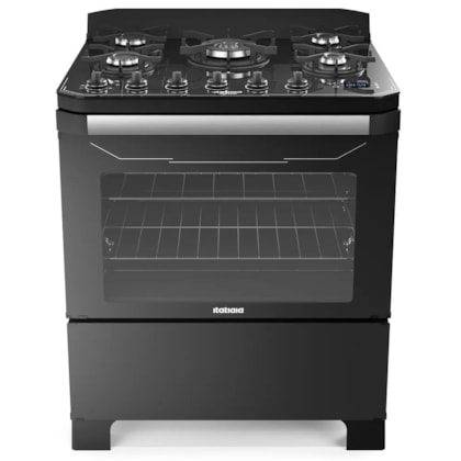 O fogão Itatiaia 5 bocas Itaglass Plus é a escolha perfeita para quem busca um fogão robusto, com design moderno e alta performance. Ele conta com trempes individuais em ferro fundido com 8 apoios, que garantem maior estabilidade e segurança para as panelas. O queimador tripla chama é ideal para preparar receitas que exigem mais potência, como carnes e legumes. Ele garante um cozimento rápido e uniforme. O puxador em alumínio escovado garante um toque de sofisticação ao produto, enquanto o forno amplo é perfeito para preparar pratos para toda a família, e seu revestimento limpa-fácil facilita a limpeza. As duas prateleiras permitem que você organize os alimentos de forma eficiente. A lâmpada blindada ilumina o interior do forno, facilitando o manuseio dos alimentos. O botão de acendimento automático na mesa é prático e facilita o uso do fogão. Com um simples toque, você acende os queimadores de forma rápida e segura.