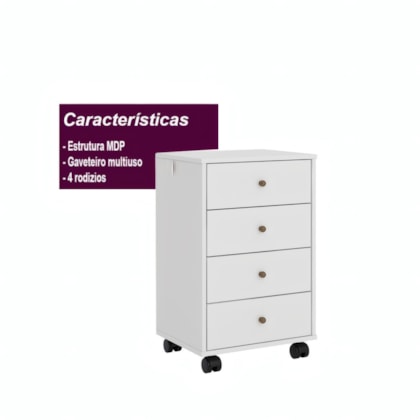 Mantenha sua organização em dia com o Gaveteiro Presence Branco da Demóbile. Ideal para home offices e escritórios, suas 4 gavetas oferecem amplo espaço de armazenamento. Os rodízios proporcionam total mobilidade, permitindo que você posicione o móvel onde for mais conveniente. Com estrutura robusta e design clean, é a solução perfeita para quem busca praticidade e estilo na organização do espaço de trabalho.
