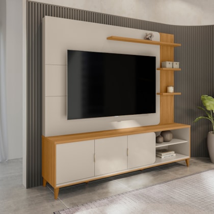 O Home Napoli combina um design moderno com alta funcionalidade, suportando TVs de até 70 polegadas. Suas portas arredondadas e nichos para decoração criam um visual único e organizado, com espaço dedicado para aparelhos eletrônicos. Este móvel é a escolha certa para transformar sua sala em um ambiente sofisticado, onde a beleza e a praticidade andam juntas.
