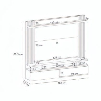 Medidas: Largura: 1,81m | Profundidade: 0,33m | Altura: 1,685m