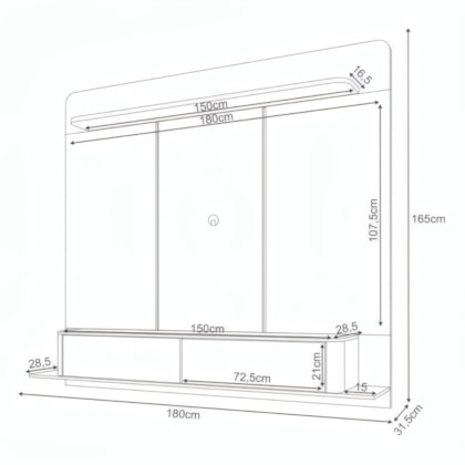 Medidas: Largura: 1,8m | Profundidade: 0,315m | Altura: 1,65m