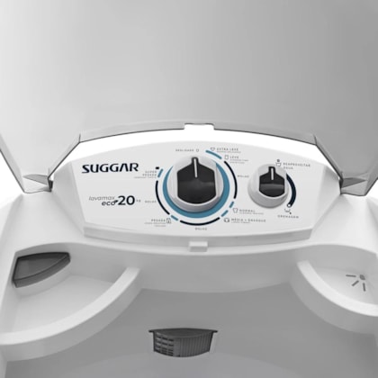 A lavadora de roupas Suggar Lavamax Eco semi-automática chegou para agilizar o seu dia a dia! Com capacidade para lavar até 20kg de roupas, incluindo edredom de casal tamanho King, e sistema de drenagem, é a maior máquina de lavar roupas da categoria. Além disso, ela possui função reaproveitar água, 1 dispenser para sabão e outro para amaciante, 3 níveis de água e filtro cata-fiapos, 3 molhos, desligamento automático, timer com programação e 6 programas de lavagem. Tudo isso com um baixo consumo de energia.