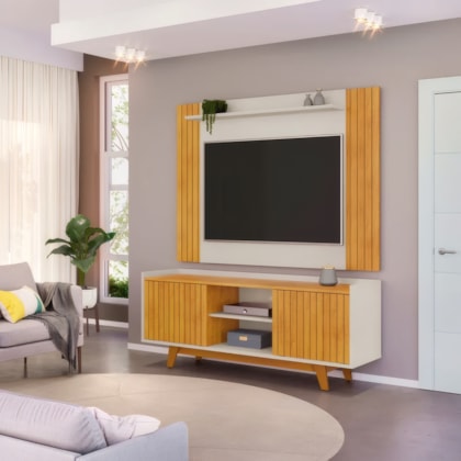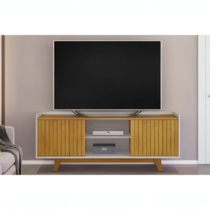 O Rack DJ Flat 1.50m combina design moderno e funcionalidade com tampo estilo bandeja e 2 portas deslizantes com frisos decorativos. Suporta TV de até 60", oferecendo organização elegante para eletrônicos e itens decorativos. Perfeito para salas contemporâneas que valorizam praticidade e estilo.