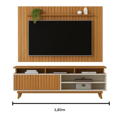 O Rack DJ Flow 1.8m possui design moderno com tampo de borda chanfrada, 1 porta deslizante ripada e nicho para eletrônicos. Com pés em polipropileno estilo retrô, suporta TV de até 70". Ideal para organizar seu espaço de entretenimento com elegância e funcionalidade.