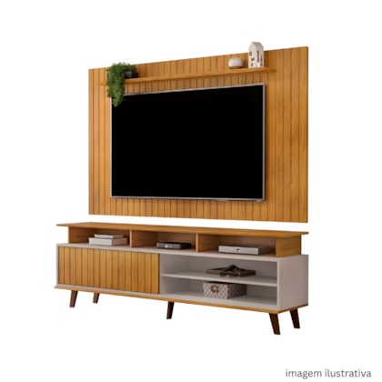 O Rack DJ Flow 1.8m possui design moderno com tampo de borda chanfrada, 1 porta deslizante ripada e nicho para eletrônicos. Com pés em polipropileno estilo retrô, suporta TV de até 70". Ideal para organizar seu espaço de entretenimento com elegância e funcionalidade.
