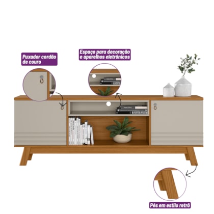 O Rack Colorado é a escolha perfeita para quem busca sofisticação e funcionalidade em um só móvel. Com 1,80 m de largura, suporta TVs de até 75 polegadas e oferece amplo espaço para acomodar seus aparelhos eletrônicos e objetos decorativos. Seu design atemporal une estrutura clássica, puxadores em couro e pés retrô, combinando elegância e modernidade para transformar sua sala de estar em um ambiente aconchegante e organizado.