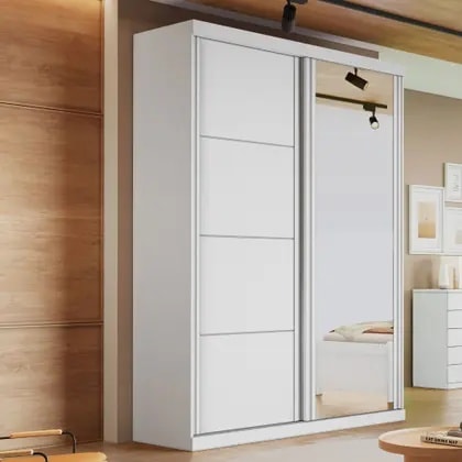 Roupeiro (ou guarda-roupa) da linha Búzios, indicado para uso em quartos ou ambientes de descanso. 2 portas (2PTS), sugerindo que o roupeiro possui duas portas de abrir, o que é comum para modelos menores ou mais compactos. Espelho (C/ESP) incluso, que pode estar em uma das portas ou em uma parte do móvel, adicionando funcionalidade e estética ao design. Dimensões: Largura: 1,61 metros Altura: 2,26 metros Profundidade: 54 centímetros Esse tipo de roupeiro é ideal para quem busca otimizar o espaço e ter um móvel versátil, com a vantagem do espelho para facilitar o uso diário, como ao se vestir.