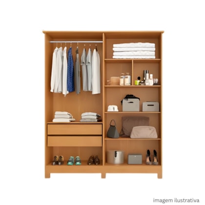 Produzido em 100% MDF com pintura UV, o Roupeiro Nina 4 Portas oferece amplo espaço interno com 4 portas, 2 gavetas de corrediças telescópicas, nicho organizador de 3 prateleiras e espaço para roupas longas. Com cabideiros em alumínio e pés em polipropileno, é perfeito para organização eficiente com estilo.