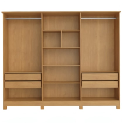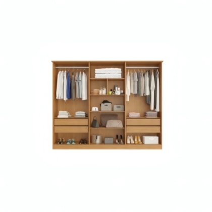O Roupeiro Nina 6 Portas 4 Gavetas Sem Espelho em Naturale/Off White é fabricado em MDF para durabilidade. Com ampla capacidade interna e 4 gavetas com corrediças telescópicas, oferece organização suave e prática para roupas e acessórios. Ideal para quartos espaçosos que demandam armazenamento eficiente.