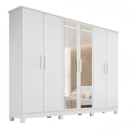Guarda-Roupa Nina 6 Portas 4 Gavetas Branco – Amplo e Funcional