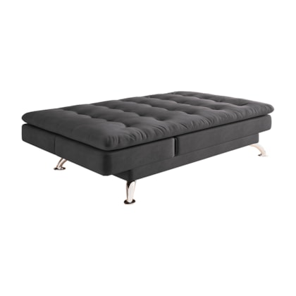 O Sofá Cama Matrix Salomé 3 Lugares em Cinza Chumbo possui revestimento veludo light e é reclinável em 3 posições. Com estrutura robusta, suporta 100kg por assento para conforto seguro. Ideal para salas modernas que buscam versatilidade e estilo contemporâneo.